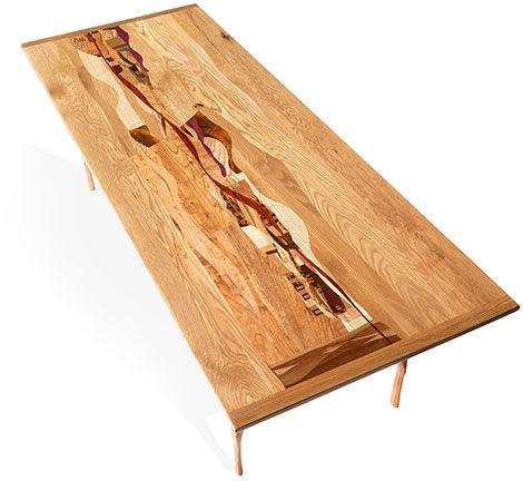 This elegant dining table joins white oak and high-contrast joinery of other species to create the center of conversation.